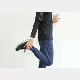 やり方は非常に簡単だ。壁や椅子に手をついた状態で、片足を後方に上げ、手で足首をつかみ(届きにくい人は足の甲でも)、足首、かかとをお尻に近づけ、呼吸をしながら20秒キープする。左右両方やる。10回を1セットとし、毎日2セットやるのが当座の目標。