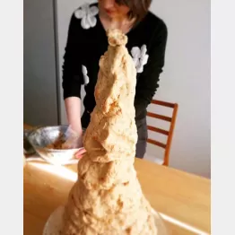 (3)クッキングシートを敷いたトレーに②をのせて、平らになるように広げる。
