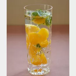 グラスにミントの葉を入れて炭酸水を注ぎ、粗くマドラーで潰してからミカンを入れ、ハチミツで好みの甘さに仕上げる。