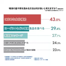 マスクの着用が当たり前のコロナ禍で、唾液力が50%以上悪化している一方、唾液の量と質が高ければ「ウイルスや細菌などの感染対策になる」と、ほとんどの歯科医師が考えていることが調査で明らかになった。マスク時代に唾液力を上げるには、どうすればいいのだろうか。