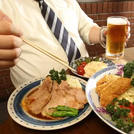 「ざるそば、カレー、ステーキを食べると食後血糖値はどれが一番上がりやすいのか。一番はざるそばで次にカレーです。ステーキはいくら食べても、よく噛んでゆっくり食べれば、それほど血糖値は上がりません。しかも、お昼に、ざるそばやカレーを飲み込むような早さで食べているサラリーマンの方々を多く見かけます。おそらく日本人は、昼飯を食べるスピードが世界トップクラスの民族。だから、高血糖の人も多くなってしまう。つまり、血糖値を上げるのは糖質と早食いの2つで、脂質・カロリーは血糖値とはほぼ無関係なのです」