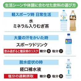 熱中症対策における水分補給というと、スポーツドリンクや経口補水液という人も多いだろう。しかし、それらには一長一短があり、飲用には注意が必要だ。