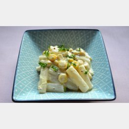 水分代謝をアップするアスパラガスとトウモロコシを組み合わせたレシピ。カレーとマスタードを利かせたマヨネーズでおいしさがアップ。