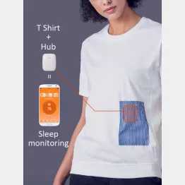 「ハブには、人の動きを感知するモーションセンサーが内蔵されていて、寝返りや心拍数、呼吸数などの情報を抽出します。また、ポケット内の温度センサーによって、睡眠中の衣服内温度も計測します。そのデータがブルートゥースによってスマホの専用アプリに送信され、解析されて自分の眠りの状態をスコアやグラフなどで把握することができるのです」