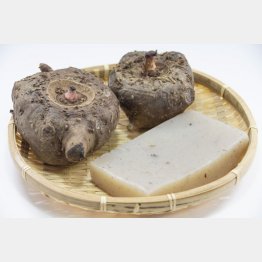 コンニャク芋を加工する食材なので特に旬はないものの、生のコンニャク芋が収穫されるのはちょうど今の時季です。