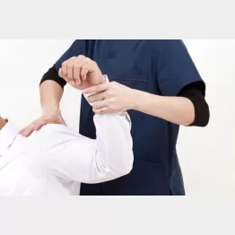 肩のレントゲンはスクリーニングとして必須ですが、骨の形は正常で特に異常はみつかりません。その上で、肩の可動域を調べます。①気をつけの姿勢から前方向へバンザイをしても水平程度しか上がらず、②小さく前へならえの姿勢から、肘を胴体につけたまま手を外側に開こうとすることがほぼできず、③気をつけの姿勢から背中に手を回してもベルトにも届かない--こういうとき、凍結肩と診断します。