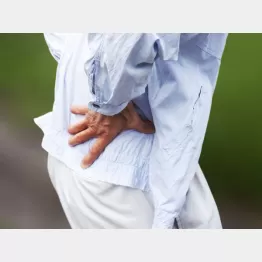 腰痛の原因として考えられる疾患に腰部脊柱管狭窄(きょうさく)症があります。脊柱管の血管や神経が圧迫を受けることにより痛みやしびれが生じます。特に下肢の痛みが強く、座位(座っている状態)よりも立位(立った状態)で歩行する際に背中を曲げないとつらい症状が続くのが特徴とされています。