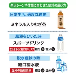 生活シーンや体調に合わせて飲料選びを