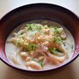 続いてバター、黒ごま、わさび、ホタテ缶を缶汁ごと加えて全体を混ぜる。塩で味を調整して器に盛り、刻んだくるみと刻みネギを散らす。