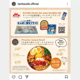 そんな中、耳寄りな情報が。タニタが森永乳業と連携し、1月9日から2月5日まで「たんぱく月間」を実施。この期間、「タニタカフェコレド室町店」でタンパク質36グラムを取れる「15品目の高たんぱくサラダボウル」を提供し、しかも森永乳業のタンパク質粉末商品を無料サンプリングするという。