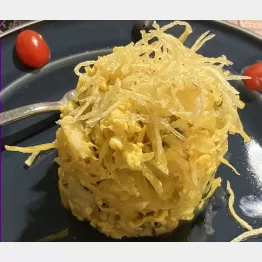 バカリャウ・ア・ブラスは、塩漬けにしたタラ(バカリャウ)を細切りにしたもの、千切りのフライドポテト、タマネギの千切り、卵を炒めたポルトガル料理だ。