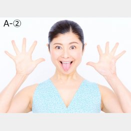「ポイントは思い切ってやること。そして、頭の先と足裏、頭の先と肘など、体の“上”と“下”が互いに引っ張りあうようにピーンと背筋を伸ばすこと。“顔筋トレ”は表情筋を動かすことに加え、目、手、舌といろんなところを同時に動かすマルチタスク。より脳への刺激になります。慣れてきたら、目線と指の向きは右、舌は左というように、向きをバラバラにしてみてください」