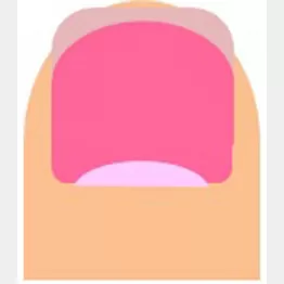 「これを爪甲剥離症といいます。爪甲剥離症の原因はいろいろありますが、靴や運動時の衝撃で爪が圧迫を受けることも大きな一因。はがれた部分の爪甲は、濁った白や黄色に見えます。ネイルをしている場合、爪の元の色がわかりませんから、気づきにくい」