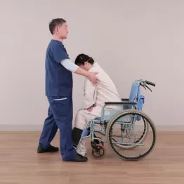 車イスからの移乗介助はフットレストの外側に足を踏み出す