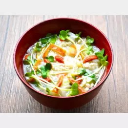 胃酸過多の不調によい、陳皮、ナガイモ、かいわれ大根を組み合わせたレシピ。ほっくり煮込んだナガイモのやさしい甘みに、陳皮とかいわれ大根が清々しいアクセントになった雑炊です。