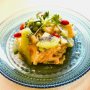 血流をアップする桃とサバ、体内の湿気を払うセロリを使ったサラダ。桃とサバは意外な組み合わせかもしれませんが、オリーブオイルや白ワインビネガーで驚くほどつながり、ワインのおともにぴったりの美味しさに仕上がります。