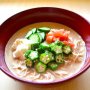鍋に鶏ひき肉を入れ、酒を振り、菜箸などでポロポロになるまで炒める。昆布だしを加えて熱し、アクを取る。皮をむいて食べやすく切った冬瓜、ちぎった梅干し、Aを加えて15分煮て、塩で味を調える。器に盛り、千切りにした青じそをのせる。