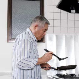 「料理」が認知症の発症や進行予防に有効なのはご存じでしょうか。メニューや段取りを決めるには認知機能のひとつである「計画力」を使い、同時に複数の作業を行うと「注意分散機能」を働かせます。大阪ガスと東北大学が行った研究では、献立を考えたり野菜を切る、ガスコンロで炒める場面では、安静時と比較して脳の前頭前野が活性化されることが分かっています。