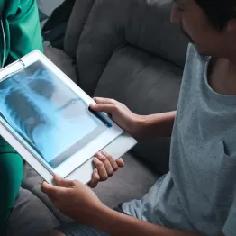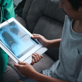 最近は、画像診断が発達し、肺がん検診のX線検査というと、一般の人は古い印象を持つかもしれません。しかし、肺腺がんは肺の末梢(外側)にできやすく、心臓などに重ならないことが多いため、X線で見つかることがよくあります。