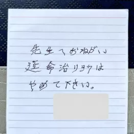 ある日、施設に通う主治医から電話があった。胃ろうを考える時期が来たというのだ。母はかねて、延命措置はしてほしくないという意思をはっきり示していたため「しなければどうなりますか」と聞いたところ「餓死するということですね」という。その言葉に強い衝撃を受けた。
