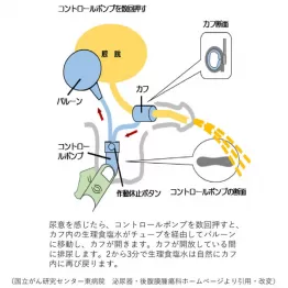 もちろん注意点もある。咳やくしゃみの際に瞬間的な尿漏れが起こることがあり、完全にゼロになるわけではない。自然排尿の機能は失われ、毎回ポンプ操作が必要となる。また、故障や感染による抜去リスクがあり、術後5年で20~25%に発生するとされる。故障時は新しい装置に入れ替えることが可能だ。