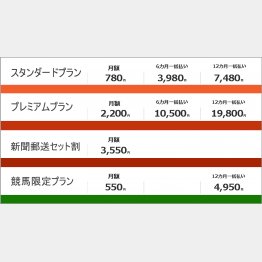 日刊ゲンダイでは、月780円のスタンダードプラン(記事50本まで)、月2200円のプレミアムプラン(無制限)、月3550円の新聞郵送セット割(新聞郵送+無制限)、月550円の競馬限定プランがございます。