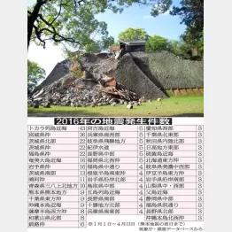 〈別表〉は、今年1月1日から熊本地震前日の4月13日までに全国で起きた地震の数を集計したものである。気象庁の震度データベースから、震度1以上の地震をすべてピックアップ。3回以上発生した震源を抜き出し、数の多い順に並べた。