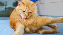 なんて見事な“にゃんたま”…!毛繕い中のねこ様がひょいっとポージング♡(芳澤ルミ子)