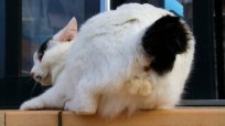 イカ耳で警戒中! まあるい尻尾の“にゃんたま”先生、相変わらずキュートだね♡(芳澤ルミ子)