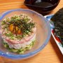 皿の上の串焼きにはエビの尻尾が見える。殻のかわりに豚をまとったエビをガブリとやる。肉汁が濃厚だが、プリプリとしたエビに大葉の爽やかな香りも。とはいえ確実に満腹中枢をノックしてくるボリュームだ。