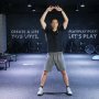 スクワットをしながら、おもり(あるいはペットボトル)を上げ下げする。お尻を下に落とすときはおもりは胸の前(写真A)、立ち上がる時におもりを頭上に上げる(写真B)。
