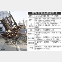 〈表〉は、高荷智也氏による、最低限「枕元」か「玄関」に置いておくべきグッズだ。避難時は両手を空けるため、荷物は手提げではなくリュックに入れておこう。