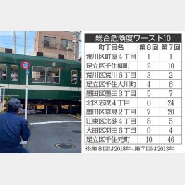 ここは「総合危険度」こそ都内ワースト7位ながら、前回の20位から大きく順位を悪化させてしまっている。項目別では「建物倒壊危険度」がワースト1位(前回も1位)、「火災危険度」もワースト2位(同17位)だ。