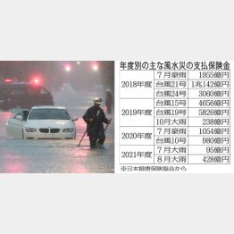 例えば、大規模自然災害による年度別の保険金支払額は17年が約1850億円だったのに対し、18年は関空連絡橋にタンカーが衝突した台風21号などで約1.6兆円、19年も約1.1兆円と2年連続で1兆円を突破している。ちなみに東日本大震災の支払額が1.3兆円だったことを思えば、いかに近年の台風や豪雨の被害が多くなっているかが分かる。