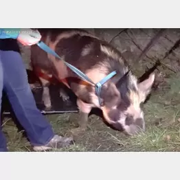 エイドリアンさんらは子ブタを鎮静剤でおとなしくさせて保護し、SPCAメープル・リッジのトラックで同病院に搬送した。同病院はその一部始終を撮影した動画を13日、ユーチューブで公開。写真はそのひとコマだ。