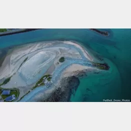 先日、リースさんはプスヘリの上空にドローンを飛ばしてマリーナの様子を撮影していて、空から見た光景がイルカの頭部に酷似していることに気が付いた。