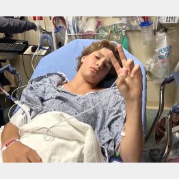 写真は治療を受けたガブリエルさん。Vサインがクールだ。