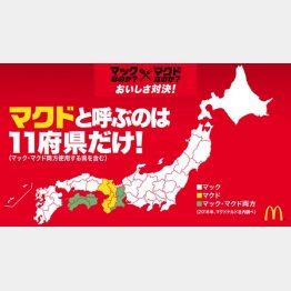 「2016年の社内調査によると、マクドナルドの愛称は、全国統一ではなく地域により異なり、関西圏の5府県では『マクド』、さらに『マック』『マクド』の呼称が混在する県も6県あることが分かりました。地域によって、マック、マクドという異なる愛称で長年親しんでいただいておりますが、今後も『マック』『マクド』の愛称で親しんでいただければ幸いです」(日本マクドナルド広報担当者)
