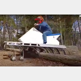 写真は、動画で18輪ATVが倒木を乗り越えて走行している場面。今年10月に商業用のバージョンを公開するため、現在、開発が続けられている。