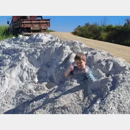 南部パラナ州イピランガに住むアーサー・エマニュエル・ビテンコート君(7)は8月3日、自宅敷地内に白い砂の山があるのに気がついた。アーサー君は無邪気にその中で転がったり遊んだり、白い砂をかぶったりした。