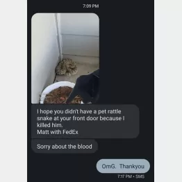 米FedExドライバーが受取人不在先で毒蛇に遭遇! シャベルで駆除し感謝される