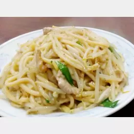還暦カブトムシのアタシが次に向かったのは町中華の雄「三幸苑」。野毛本通りから野毛坂に抜け左側にある。途中向かいの天保堂苅部書店で古本をあさるのもいい。さて、ここ三幸苑では名物チャーメン(900円)だ。中華麺とうどんの中間のようなやわやわの麺をモヤシ、ニラ、豚肉とたっぷりのニンニクで炒め合わせた焼きそばの変形版。紹興酒をぐびりとやってチャーメンをかっ込む。ニンニク臭が鼻を抜ける。うまい!