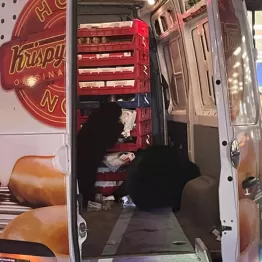 ドーナツなどを各店舗に配送している途中に、2頭のブラックベアが、開いた状態の後部ドアから車内に侵入し、ドーナツを20個、チョコレートドーナツを6パック食べた。最終的に、基地の警備員がサイレンを大音量で鳴らしてクマを追い払ったという。