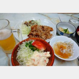 ガッツリいきたくて朝食を抜いてきたため、品川駅前の「つばめグリル」でハンブルグステーキにグラスビールか、大森まで足を延ばして「お食事まるやま」で生姜焼きに中生か。悩んだ結果、まるやまに。決め手は各種ある小鉢。シラスおろしとポテトサラダの魅力に勝てず大森へ。東口から徒歩5分、いつ前を通っても老若男女でいっぱいの人気店だ。とにかくここは肉関係で勝負すべし。2800円の高級とんかつから1100円の豚バラ生姜焼きまで、肉の種類によって値段が変わる。生姜焼きも豚バラ、肩ロース、ロース、リブの4種類あるので、その日の腹と懐具合で選べばいい。アタシは脂っこい豚バラをチョイス。ご飯は半分にしてもらい、ポテサラを追加。そして忘れちゃならない中生。ランチタイムをずらしたとはいえ、13席のカウンターは若いサラリーマンたちで満席。中にはとんかつ定食の大盛りをかっこむたくましき女子も。ここで生をあおっているのはアラ還のアタシだけ。長く生きてきたご褒美だぜ。ポテサラで飲んでいるところへ脂でてらてらの生姜焼きが登場。箸でグワシとつかみ口に放り込む。そこに白飯は若者スタイル。アタシはすかさず生をぐびり。生姜焼きはつまみ。飯のおかずはシラスおろし。どうだ! 文句はなかろう。