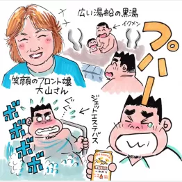 「久が原湯」ストーブ前で仁王立ち。汗だくでもまだいたい!