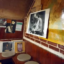 「ジャズ狂いのおっさんとカウンターで隣同士になると不思議な雰囲気になるんですよ」。そう話す2代目店長の石崎さん。「酔ったジャズ好きおやじの話を、ふわっとした女の子が聞いているんですが……わっかんないだろうな~(笑)」。