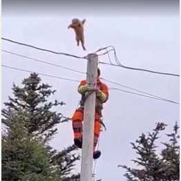 助けを求めて鳴いていたのに…カナダで猫が電柱の上から予測不能の大ジャンプ!