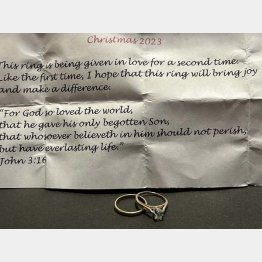 指輪は間違いなどではなく、次のように記された匿名の寄付者の手紙が添えられていた。