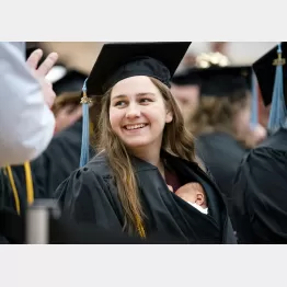 フェリス州立大で幼児教育の学士号を取得したグレース・ジムチャックさん(24)で、12月6日に娘のアナベラちゃんを出産、15日の卒業式に出席した。当初の予定では卒業式の翌日16日に帝王切開で出産する予定だったが、早まってしまったそうだ。