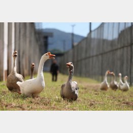 この刑務所にも、もちろん最先端の検知システムが導入されており、服役囚がそれをかいくぐり脱獄するのはほぼ不可能だ。それでも故障などによるシステムダウンに備えて、バックアップでアナログな検出システムも用意しておく必要がある。通常は看守と番犬がその役を担うが、この施設ではガチョウが導入されているというわけ。